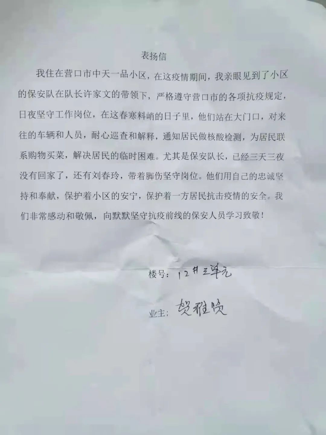 這三天里,物業(yè)人也經(jīng)受了太多的委屈和抱怨。因為疫情封閉,禁止人員外出,部分業(yè)主不理解,把不滿和怨氣都撒在保安的身上,有的爭吵謾罵,有的甚至還動手。他們每天都要不停地解釋,承受著各種指責和辱罵,但他們不退縮,以良好的品質(zhì),堅守在自己的崗位上,盡心盡力做好工作。