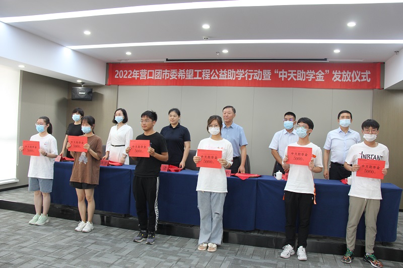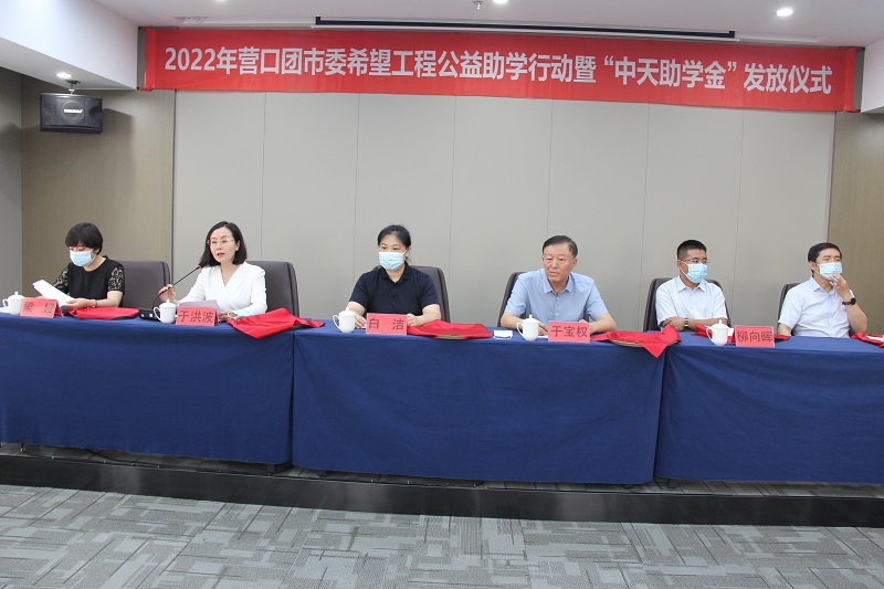 8月9日上午,2022年?duì)I口市希望工程公益助學(xué)活動(dòng)暨“中天助學(xué)金”發(fā)放儀式在中天集團(tuán)總部會(huì)議室舉行。營(yíng)口市團(tuán)市委書(shū)記白潔,中天企業(yè)集團(tuán)董事長(zhǎng)于寶權(quán)、總裁于洪波,營(yíng)口市教育局副局長(zhǎng)柳向暉,營(yíng)口市慈善總會(huì)副會(huì)長(zhǎng)黃渤,營(yíng)口市團(tuán)市委副書(shū)記梁嫚以及獲得資助的31名學(xué)生,出席了本次發(fā)放儀式。