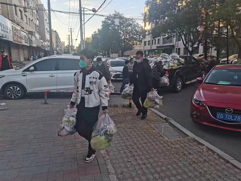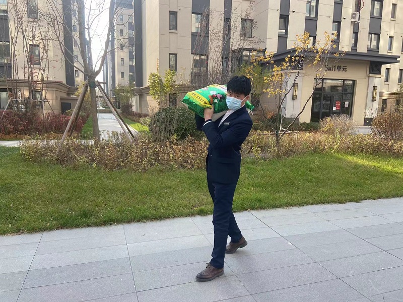盤(pán)錦及撫順物業(yè)公司服務(wù)的幾個(gè)項(xiàng)目,都是新交房小區(qū),面對(duì)入住業(yè)主較少,裝修工人滯留,物業(yè)積極聯(lián)系社區(qū)做好封控人員的核酸檢測(cè)工作。由于人員緊缺,不少物業(yè)人員24小時(shí)堅(jiān)守在項(xiàng)目,一人身兼數(shù)職,保安剛幫業(yè)主把物品送上樓,又要馬上幫助保潔人員對(duì)大堂進(jìn)行消殺工作;保潔員除了園區(qū)衛(wèi)生清潔,樓道消殺,還要上門(mén)收垃圾;房管員受裝修完未入住業(yè)主委托上門(mén)澆花……一件件小事,卻大大的溫暖了業(yè)主,撫順中天首府的業(yè)主還專(zhuān)門(mén)在撫順交通廣播電臺(tái)上講述了中天物業(yè)的溫暖故事。為了讓業(yè)主安心居家,物業(yè)還采購(gòu)蔬菜包、大米等物資免費(fèi)為居家業(yè)主發(fā)放,同時(shí)為了減少聚集,物業(yè)工作人員挨家挨戶(hù)送到業(yè)主手中,讓防控有力度,抗疫有溫度。