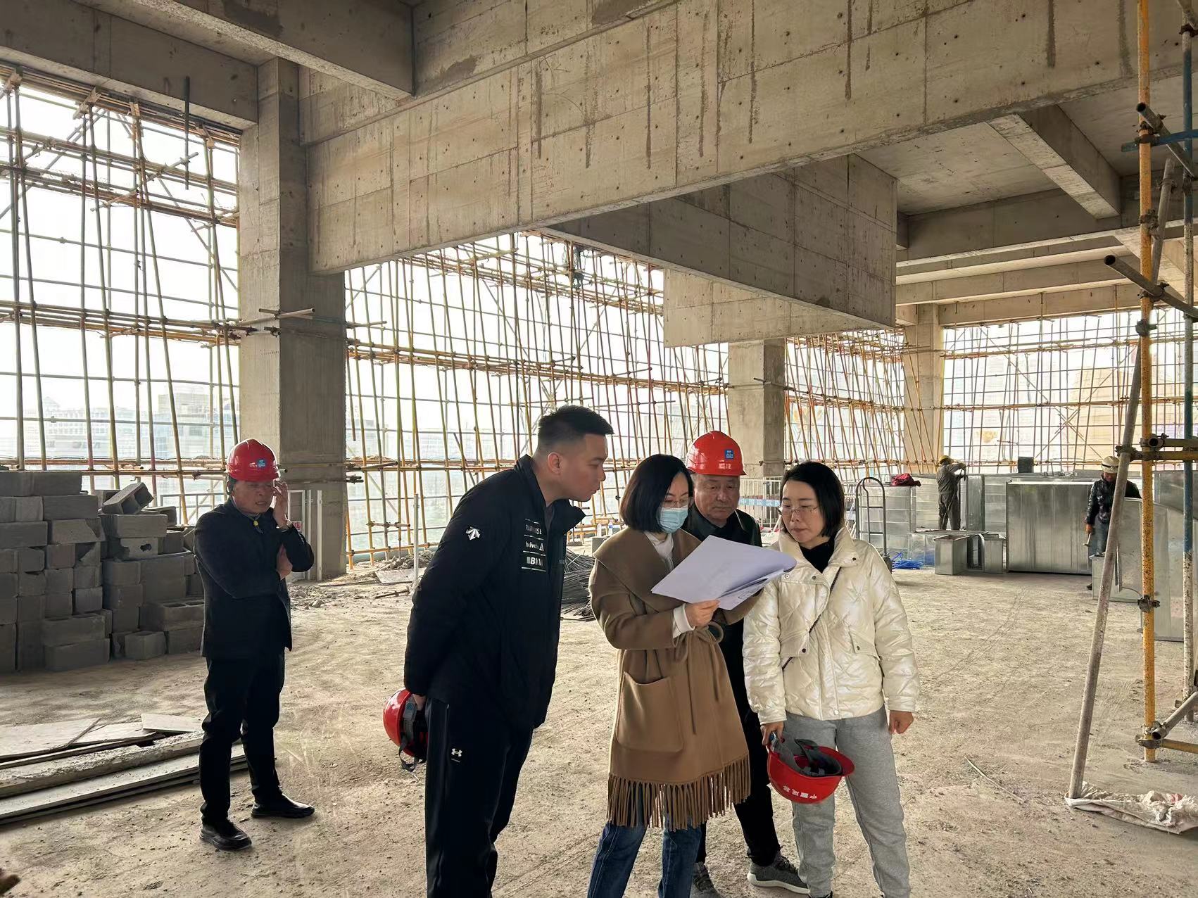 總裁一行首先到達B1#樓首層,并逐層向上巡視。視察中,總裁對B1#樓酒店大堂及一層宴會廳提出優(yōu)化建議,保持現(xiàn)有砌筑墻體不做拆改,擴大了酒店大堂面積。在B1#樓2層總裁提出移動宴會廳隔墻并移動室外消防梯,在保證使用功能前提下盡量擴大宴會廳面積;對酒店客房門口及衛(wèi)生間提出優(yōu)化建議,有效節(jié)約了成本;對酒店綜合管道布置及4層北側(cè)空調(diào)機組擺放下達了優(yōu)化改進任務(wù)等。