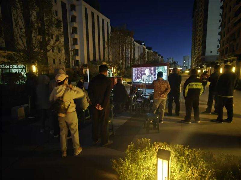 晚上為業(yè)主播放《大決戰(zhàn)之遼沈戰(zhàn)役》更是神來之筆。盡管夜晚帶著絲絲涼意,但業(yè)主們的熱情絲毫不減。大家圍坐在一起,眼睛緊緊盯著屏幕,沉浸于那段波瀾壯闊的歷史當(dāng)中。影片中宏大的戰(zhàn)爭場面、戰(zhàn)士們英勇無畏的沖鋒、戰(zhàn)略決策的智慧較量,無不震撼著每一個人的心。業(yè)主們似乎穿越時空,感受到了解放戰(zhàn)爭時期的熱血與艱辛,愛國情懷在心中進一步高漲。這種情懷讓他們忘卻了寒冷,只沉浸在對祖國偉大歷程的自豪與感動之中。